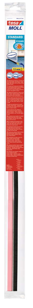 Wenn es draußen ungemütlich wird, können Sie die Spalten zwischen Türen und glatten Böden, z.B. Parkett, Laminat oder PVC, mit tesamoll® Standard schnell, einfach und effektiv schließen. Durch die selbstklebende Türdichtschiene stoppen Sie Zugluft und Kälte und sparen Energiekosten (bis zu 40%). Zur Befestigung benötigen Sie keine Schrauben oder Nägel. Die überlegene Klebetechnologie von tesa® sorgt für einen langanhaltenden und starken Halt der Kunststoffschiene, während die hochwertigen Nylonborsten die Spalte komplett abdichten.